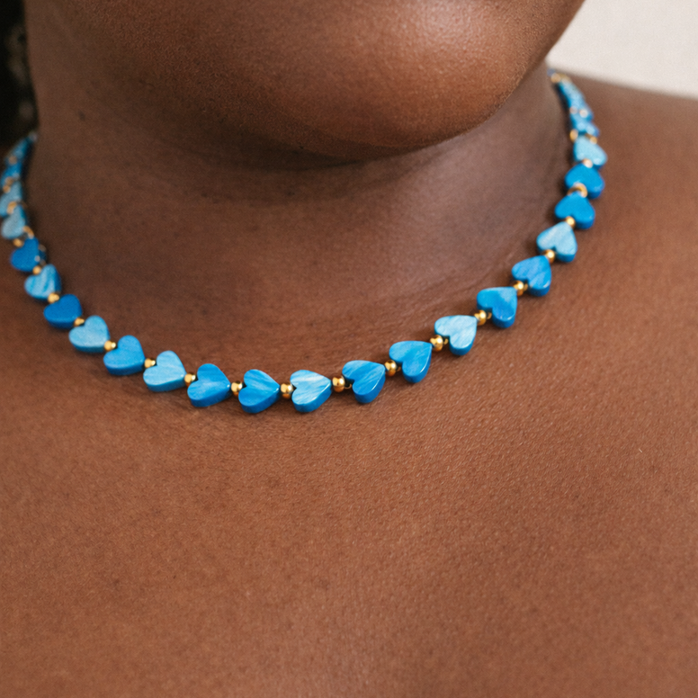 • Des perles en forme de cœur bleu océan rehausseront instantanément n'importe quelle tenue (t-shirt, robe, superpositions).