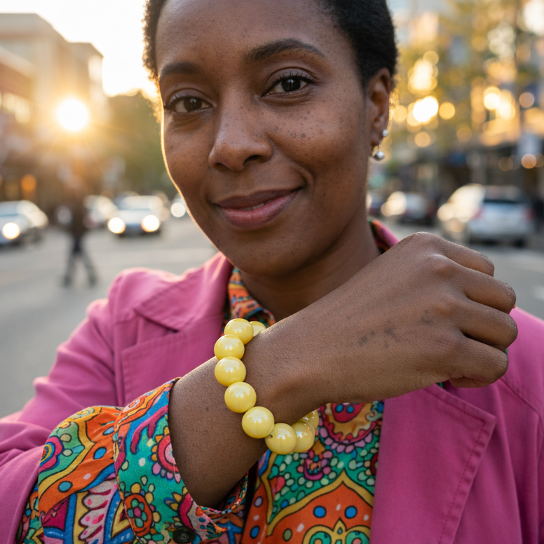 Butter yellow glossy beads, adding an instant pop of color